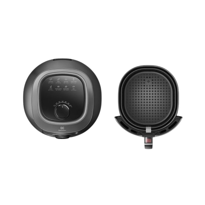 La Airfryer Electrolux combina funcionalidad y diseño moderno con acabado en gris oscuro. Su capacidad de 5 litros permite cocinar porciones familiares, ideales para comidas rápidas, saludables y deliciosas.