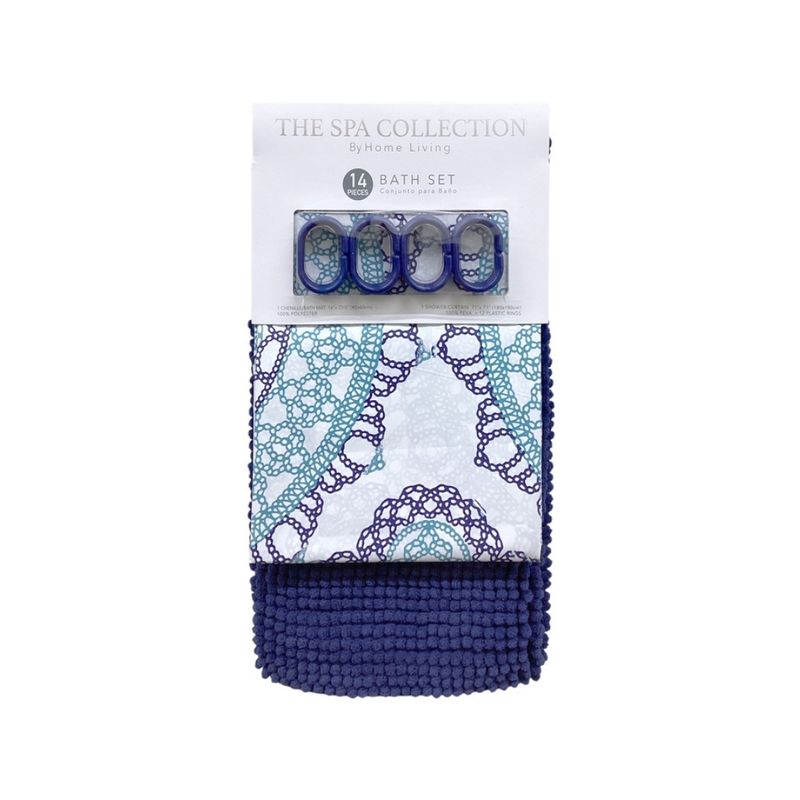 Este set para baño combina una alfombra de chenilla con una cortina de ducha, ofreciendo una solución práctica y estética para mantener el baño ordenado y protegido de salpicaduras. Su diseño en color azul aporta un estilo fresco y agradable, ideal para complementar distintos ambientes de baño.
