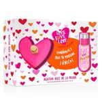Love Love Love de Agatha Ruiz de la Prada es una combinación floral de rosa y pétalos de Jazmín, donde el romanticismo se encuentra con la alegría del acorde de amora y el efecto natural de la grosella. La base de sándalo y musc crea una nota extremadamente sensual Set que contiene: 1 Agatha Ruiz de la Prada Look Eau de Toilette - Frasco de 80 ml 1 Agatha Ruiz de la Prada Look Booster Eau de Toilette - Frasco de 25 ml