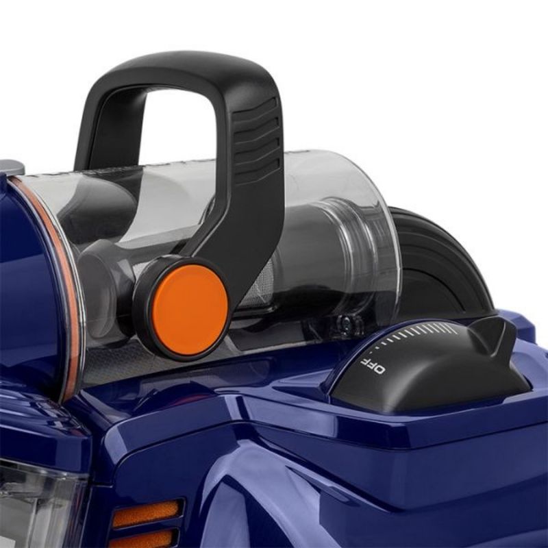 El sistema sin bolsa permite un vaciado rápido y práctico, evitando el contacto con el polvo. El compartimiento integrado mantiene los accesorios siempre a mano para facilitar la limpieza en cualquier momento. Además, su motor de bajo consumo y diseño innovador asegura un funcionamiento silencioso sin sacrificar rendimiento.