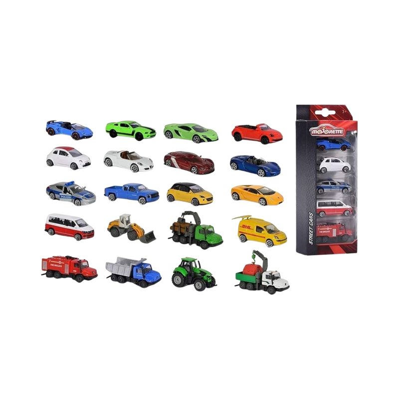 La serie "Street Cars" de Majorette destaca por su diversidad y nivel de detalle. En este pack encontrarás una selección variada que puede incluir autos deportivos, sedanes, vehículos de construcción, tractores, ambulancias y camiones de bomberos, lo que lo convierte en una excelente opción para iniciar o ampliar una colección.