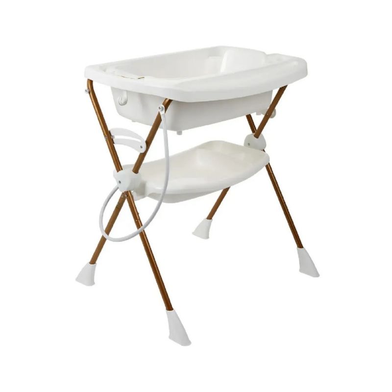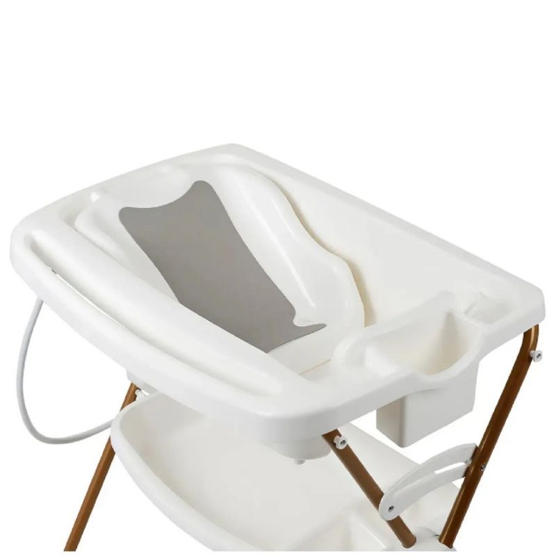 Incluye un soporte estable para la bañera, una bañera resistente, un asiento reductor de profundidad ideal para recién nacidos, una manguera para drenaje rápido y una bandeja de almacenamiento para mantener al alcance todos los productos de baño. Su diseño permite un plegado sencillo para ahorrar espacio y facilita su almacenamiento o transporte.