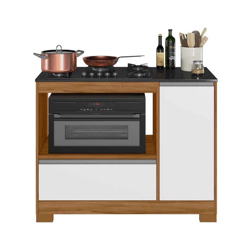 El mueble está compuesto por una puerta y un cajón, ofreciendo un espacio compacto y bien distribuido. Incorpora tampo cortado para cooktop, facilitando una instalación prolija y adaptada al diseño de la cocina.