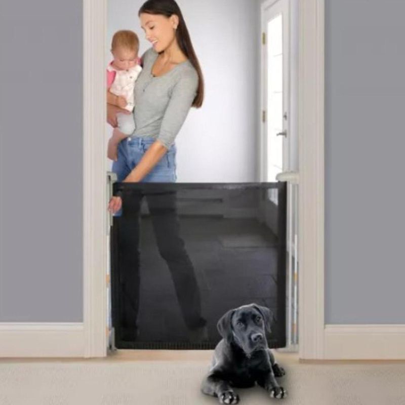 Fabricada con malla de alta resistencia y estructura duradera, la barrera asegura estabilidad y larga vida útil. La tecnología de auto-bloqueo garantiza que la barrera permanezca segura mientras está extendida, proporcionando tranquilidad a los padres.
