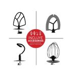- Sistema Inteligente de variación de velocidad para garantizar una velocidad de funcionamiento constante, independientemente de la carga. - Movimiento planetario para optimización de mezclado/amazado/batido. - Cabezal rebatible. - Píes antideslizantes. - Cuerpo y engranajes metálicos. - Accesorios incluidos: Batidor de alambre, Accesorio mezclador, Gancho de amasar, Espátula de silicona y Tapa anti-salpicaduras. - Accesorios opcionales: Accesorio para pastas y Picador de carne.