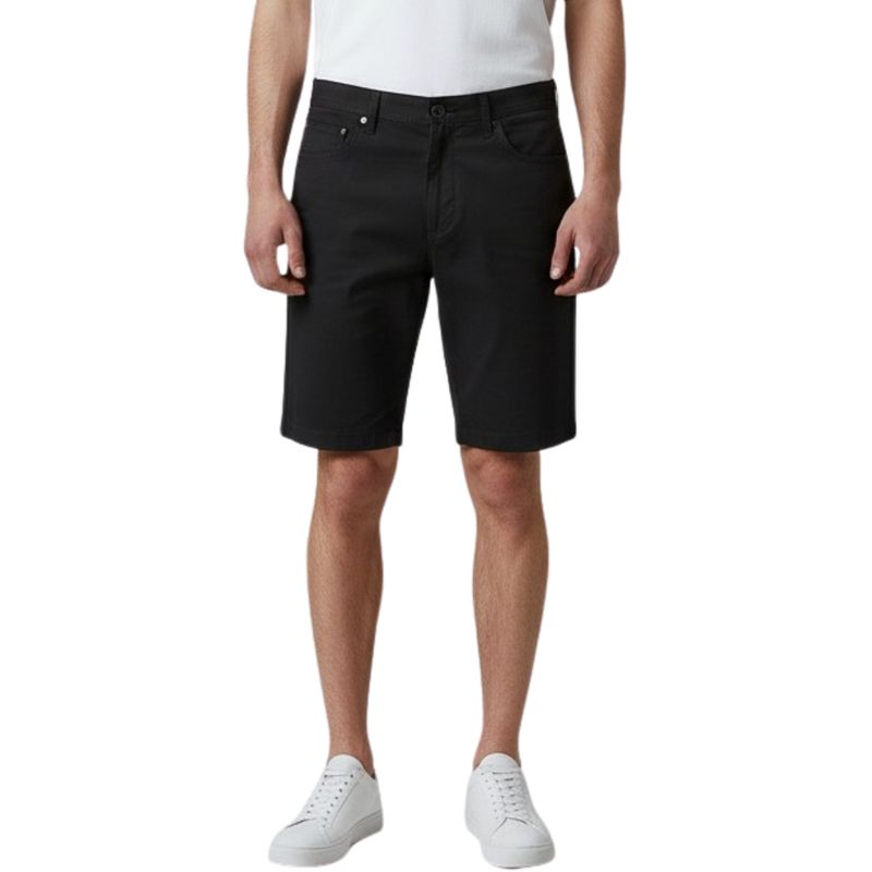 Esta bermuda está diseñada con cinco bolsillos funcionales, incluyendo bolsillos laterales y traseros, brindando espacio práctico para guardar objetos personales. Su cierre de botón y cremallera asegura un ajuste confiable y seguro. Llega por encima de la rodilla, aportando un estilo moderno y cómodo para climas cálidos.
