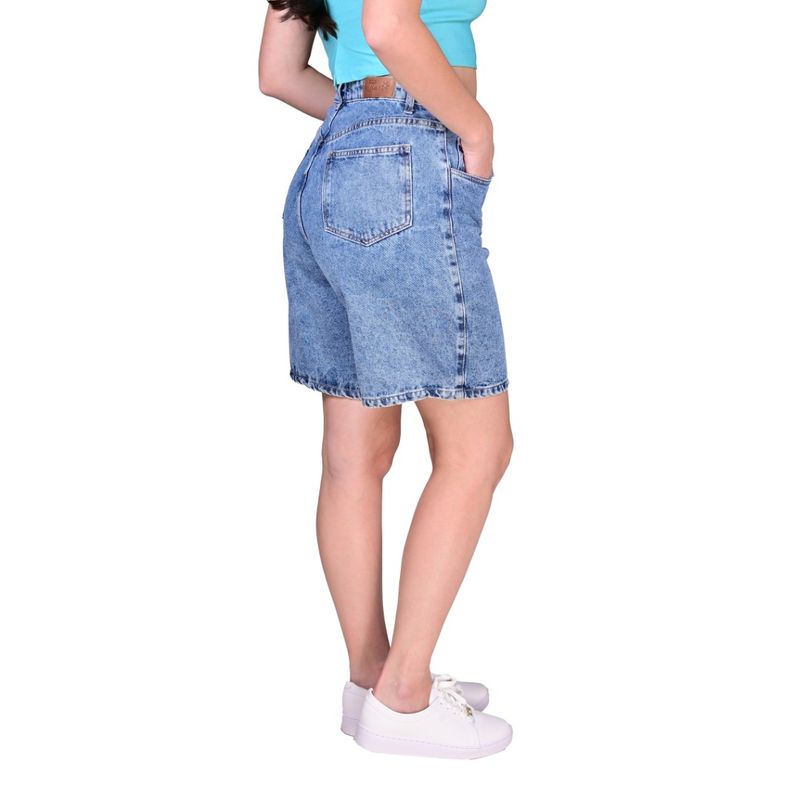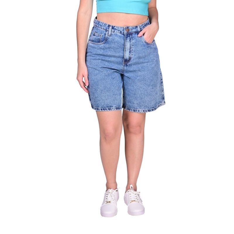 La Bermuda Denim Longline Azul de Tiare combina un diseño moderno con el estilo clásico del denim. Su corte largo y recto hasta la rodilla aporta un aire relajado, ideal para looks urbanos y casuales. Presenta un acabado lavado ácido (acid wash) que genera un efecto desgastado y auténtico, aportando personalidad y estilo contemporáneo a la prenda.