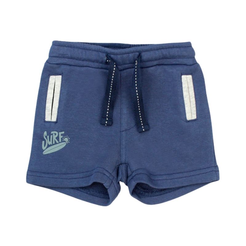 Con un diseño moderno y llamativo, esta bermuda de bebé presenta estampado temático de surf en la parte frontal y un parche de marca en la parte trasera, aportando un toque divertido y único. Su tono azul combina fácilmente con remeras lisas o estampadas, creando conjuntos versátiles para el día a día.