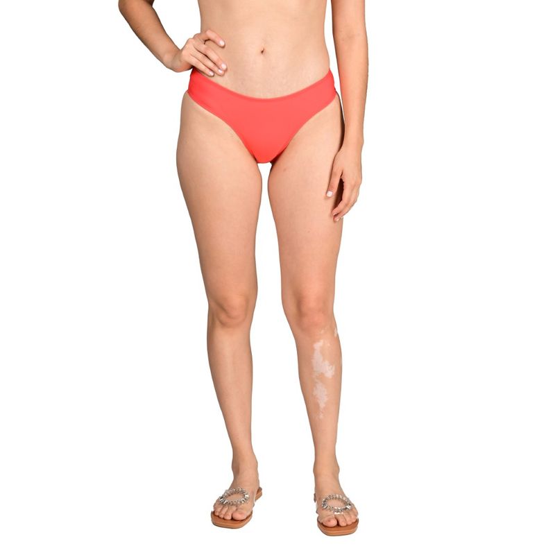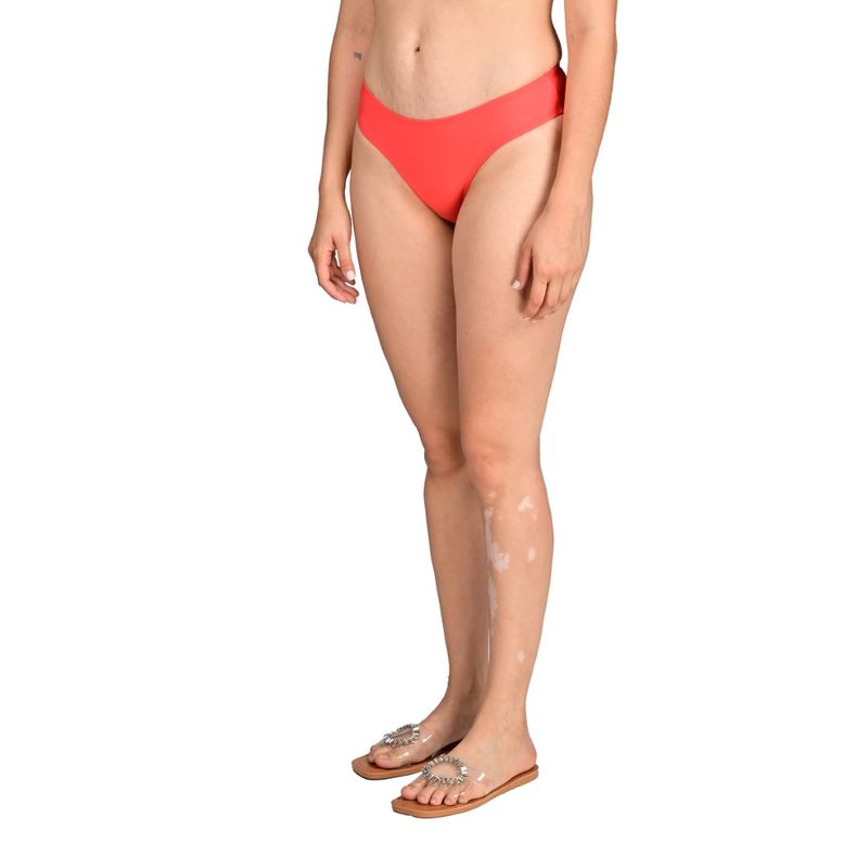 El bikini para mujer Mix & Match en color rojo coral liso destaca por su diseño moderno y favorecedor. La braga de talle bajo presenta un corte de pierna alta que estiliza la figura y una cobertura trasera reducida, aportando un toque contemporáneo y sensual. Su color rojo coral resalta el tono de la piel y transmite una imagen fresca y sofisticada, ideal para quienes buscan un estilo femenino y elegante durante el verano.