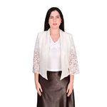 El Blazer 3/4 Marfil Forrado En Encaje Mujer L'exclusif es una prenda elegante y sofisticada, ideal para ocasiones especiales y looks que requieren un toque de distinción. Este blazer tipo bolero o chaqueta corta se caracteriza por su corte recto en la parte frontal y su cuello tipo solapa ligeramente doblado, que aporta estructura y estilo sin necesidad de botones ni cierres.