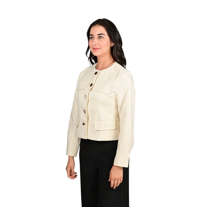 Este blazer cargo combina un diseño clásico con un toque moderno y funcional. Su color beige aporta versatilidad, mientras que los botones y los detalles tipo cargo realzan el estilo y aportan carácter a la prenda. Perfecto para lograr un look elegante pero relajado, adecuado tanto para reuniones informales como para salidas donde se busca un estilo sofisticado y cómodo.
