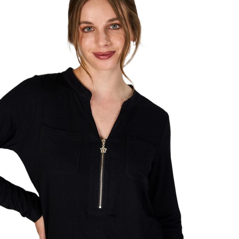 Blusa M/L Maya Negro C/ Cierre Polera Woman
