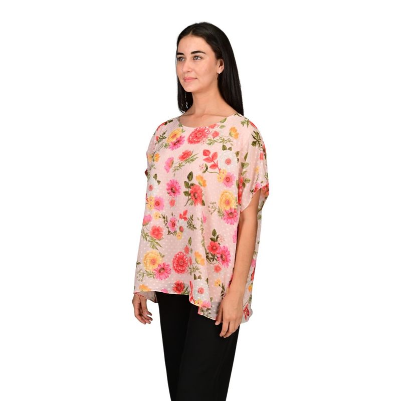 La blusa manga corta de L'exclusif con estampado floral rosa es una opción delicada y elegante para talles especiales, que combina comodidad y estilo en una sola prenda. Su caída recta y diseño favorecedor permiten un look moderno y femenino, mientras que el estampado floral aporta frescura y vitalidad.