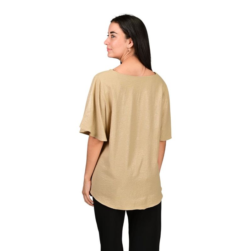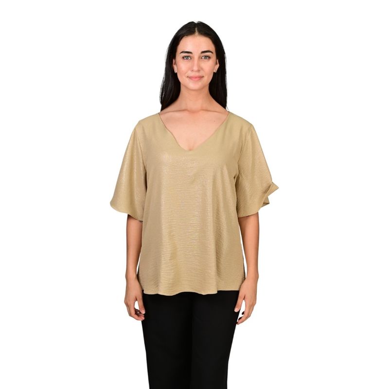 La blusa manga corta de L'exclusif en tono beige es una prenda versátil que combina elegancia y confort. Su diseño minimalista y de caída recta aporta un estilo refinado, mientras que las mangas tipo capa integradas añaden un toque delicado y femenino. La espalda cubierta completa un look pulido y adecuado para múltiples ocasiones.