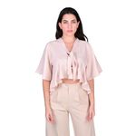 La Blusa Manga Corta Con Volados Estilo Boho Nude Mujer Tiare es una prenda versátil y moderna que combina un estilo bohemio con un toque femenino elegante. Su corte crop y escote en “V” con lazo decorativo frontal resaltan la figura, aportando un diseño delicado y sofisticado.