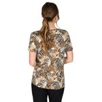 La blusa de manga corta con estampado animal print en tonos tierra es una prenda moderna y versátil, ideal para quienes buscan un estilo casual con un toque de tendencia. Su diseño con cuello en V aporta un acabado elegante que estiliza la silueta y permite crear múltiples combinaciones.