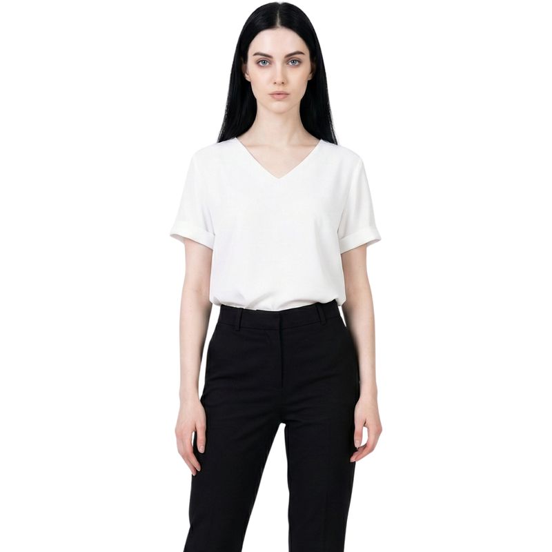 Esta blusa de doble crep con cuello en V y manga corta combina elegancia y frescura, ofreciendo un diseño ligero y femenino que se adapta a múltiples ocasiones. Su corte permite libertad de movimiento, mientras que el cuello en V aporta un toque sofisticado y favorecedor. Ideal para un look casual elegante, reuniones de trabajo o salidas informales.