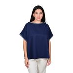 Esta blusa de manga corta combina elegancia, comodidad y un toque moderno ideal para el día a día. Diseñada en un tono azul marino profundo, ofrece una apariencia clásica y sofisticada que nunca pasa de moda. Su escote tipo barco realza la línea del cuello con sutileza, aportando un aire femenino y equilibrado.