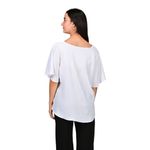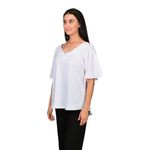 Descubre la sofisticación y comodidad de esta blusa manga corta en crepe con brillo blanco de L'exclusif, diseñada especialmente para resaltar tu estilo con elegancia. Su cuello corte en V y mangas holgadas ofrecen un ajuste relajado y fresco, mientras que la textura del crepe con brillo aporta un toque delicado y luminoso, ideal para diversas ocasiones.