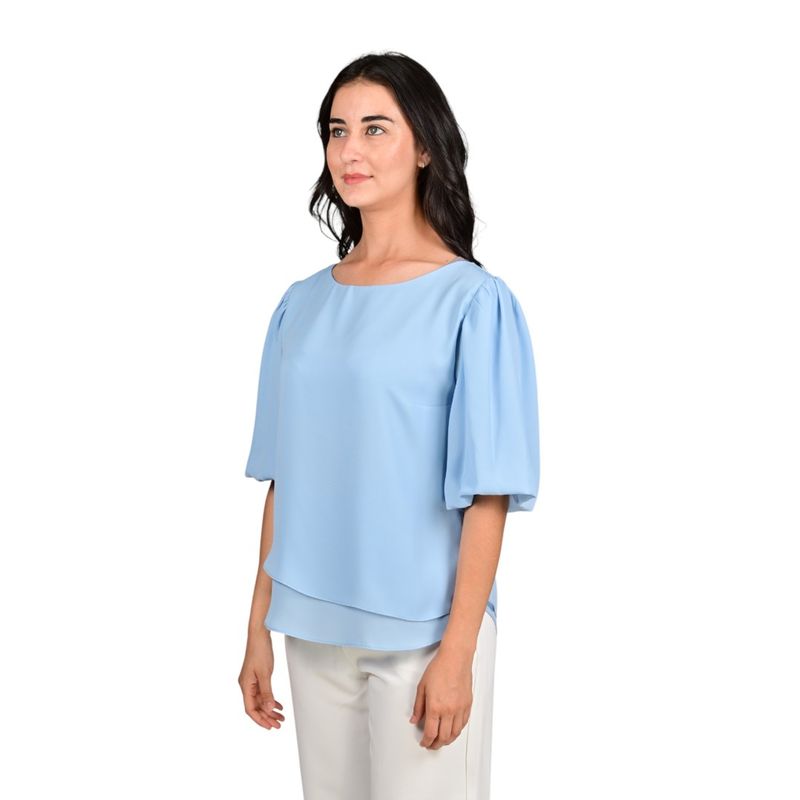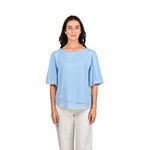 Esta blusa de manga corta en crepe doble ofrece un diseño delicado y sofisticado, ideal para crear looks elegantes y frescos. Su caída suave y textura ligera permiten comodidad durante todo el día, siendo perfecta para salidas casuales, reuniones informales o eventos diurnos.