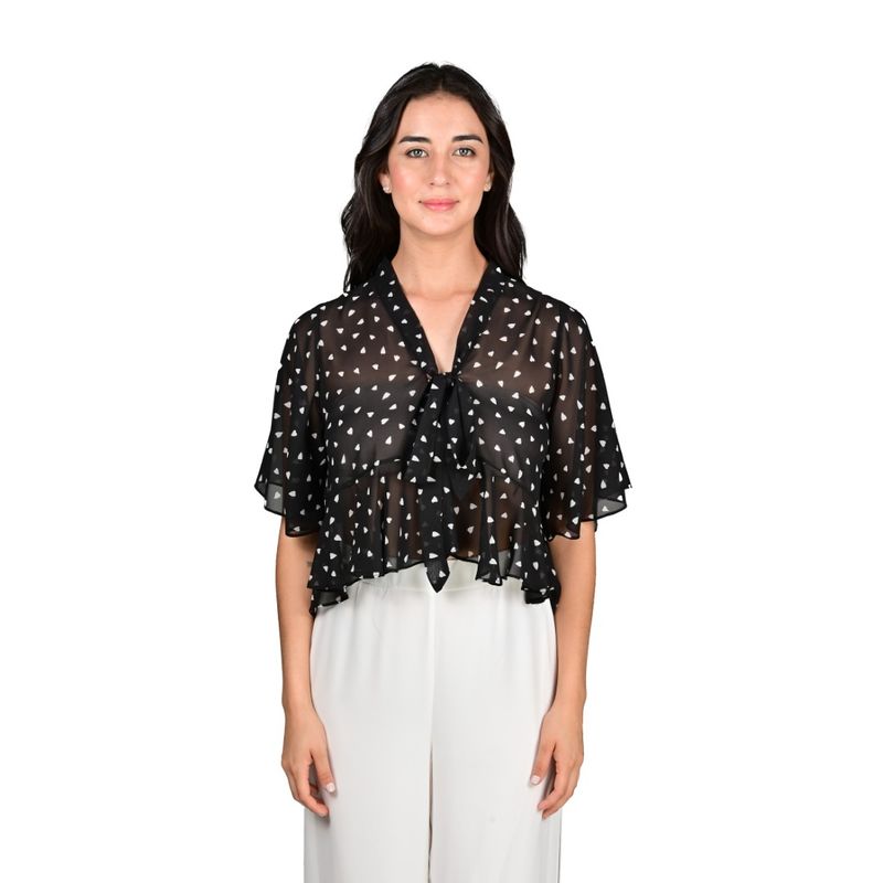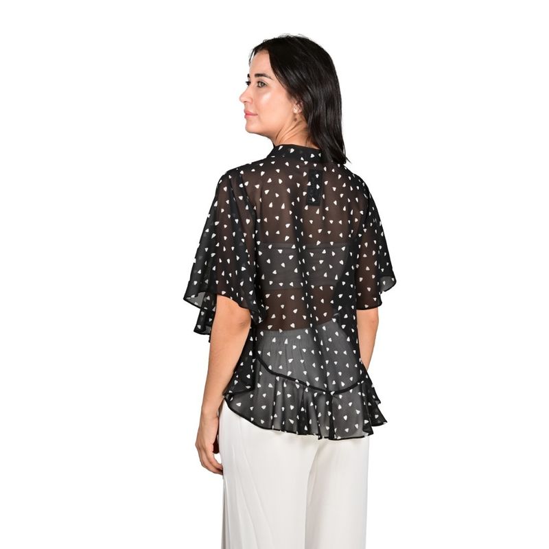 Esta blusa manga corta con estampado de corazón en gasa y detalle de volado combina delicadeza y frescura, ideal para looks femeninos y modernos. Su diseño ligero y fluido permite un movimiento natural, mientras que el volado en la parte inferior agrega un toque romántico y sofisticado. Es perfecta para ocasiones casuales, reuniones sociales o salidas diurnas donde se busca un estilo chic y cómodo.