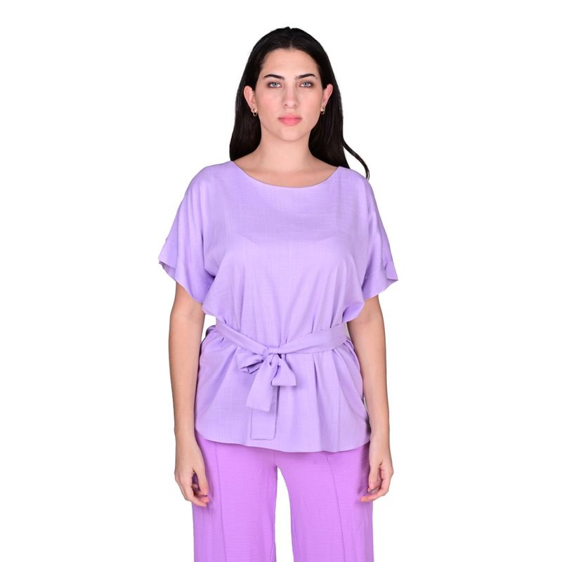 La Blusa Manga Corta Manga Japonesa Lila de L'exclusif destaca por su corte recto y escote amplio, que aportan comodidad y frescura. Sus mangas cortas estilo japonesa ofrecen un look moderno y ligero, ideal para los días cálidos o para capas ligeras en temporadas más frescas.