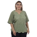 La Blusa Manga Corta Olivo Combinado En Broderie Mujer Susan Miller se distingue por su diseño femenino y elegante, ideal para quienes buscan frescura y un toque sofisticado en su vestuario diario. Su color verde oliva se combina con detalles de broderie calado que aportan un aire romántico y artesanal. El escote en V estiliza la silueta y el corte holgado garantiza comodidad en todo momento. Las mangas cortas estilo murciélago y el bajo festoneado, siguiendo el patrón floral del broderie, le otorgan un acabado único y versátil.