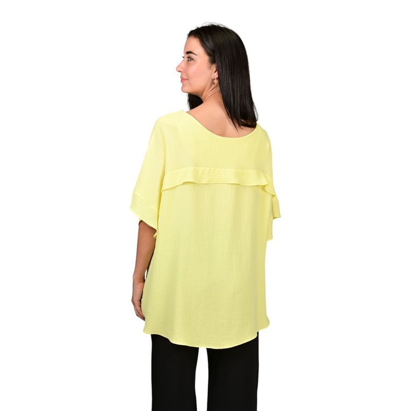 Destaca con un look vibrante y cómodo con esta blusa manga corta texturizada de L'exclusif. Su corte holgado permite libertad de movimiento y comodidad durante todo el día. El diseño incorpora un cuello redondo y mangas cortas amplias tipo volante que aportan un toque femenino y delicado, mientras que el detalle de canesú superpuesto en pecho y espalda añade sofisticación y estructura al conjunto.