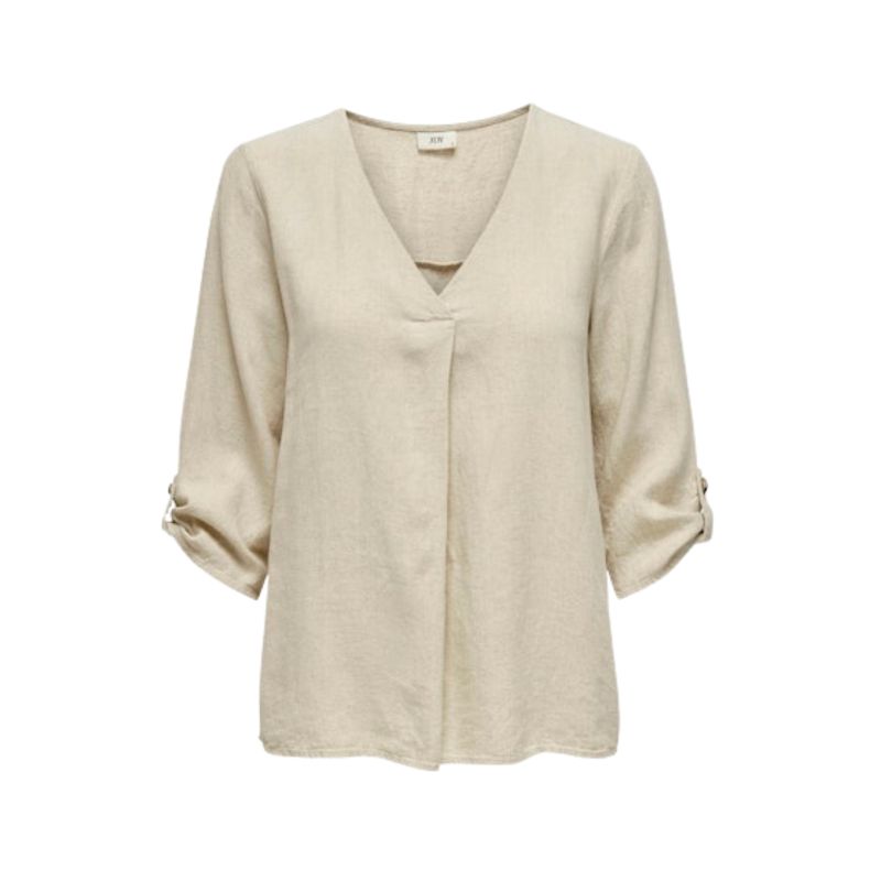 La Blusa Beige de JDY para mujer es una prenda ideal para quienes buscan un equilibrio entre elegancia y comodidad. Con un diseño de mangas tres cuartos con volumen y cuello en V, esta blusa de corte regular resalta por su estilo natural y su confección en materiales livianos, perfectos para climas templados o cálidos.
