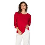 Recomendaciones de Combinación: Ideal para combinar con pantalones de vestir de talle alto que equilibren el volumen de las mangas, faldas lápiz para crear un contraste elegante, o jeans ajustados para un look casual-chic. Perfecta con blazers estructurados para ocasiones formales o cardigans finos para looks más suaves. El color rojo se complementa hermosamente con negro, blanco, beige y tonos neutros. Combinála con champion blancos para un estilo moderno o con zapatos de tacón para elevar el conjunto.