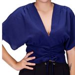 Blusa Mc Azul Marino Con Goma Y Volados Tiare