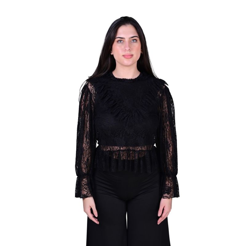 El top que lleva la modelo no está incluido con la blusa de encaje.