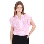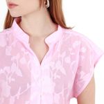 La Blusa Semitransparente Floral de la marca Fuera De Serie es una prenda pensada para resaltar la elegancia y frescura del estilo femenino. Su diseño delicado en tono rosa claro incorpora un patrón floral en relieve, otorgándole una textura sutil y sofisticada. El cuello mao combinado con un escote en V estiliza la silueta y añade un toque moderno. La botonera frontal con tres botones refuerza su aspecto refinado y funcional. Las mangas cortas ofrecen una opción ideal para los días cálidos o para combinar con otras prendas sin recargar el atuendo.