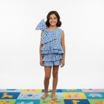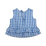 Esta blusa sin mangas para niña destaca por su diseño fresco, encantador y pensado para acompañar los días de verano con total comodidad. Presenta un delicado estampado de cuadros vichy en tonos azules y blancos, un clásico que nunca pasa de moda y que aporta un estilo dulce y moderno al mismo tiempo. El escote redondo mantiene una apariencia limpia y cómoda, mientras que el gran lazo decorativo asimétrico en el hombro izquierdo agrega un toque distintivo que realza la personalidad de la prenda.