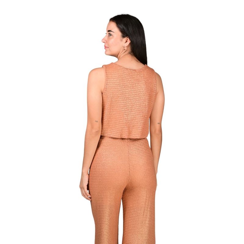 Se puede combinar con pantalones de tiro alto, faldas o shorts para lograr un look armónico y estilizado. Ideal para usar con tops, remeras o prendas interiores lisas que resalten el diseño en red. Se complementa muy bien con accesorios modernos como carteras pequeñas, cinturones y bijouterie discreta. Para el calzado, se recomienda calzado cerrado elegante o champion, según el estilo que se quiera lograr, desde urbano hasta más arreglado.