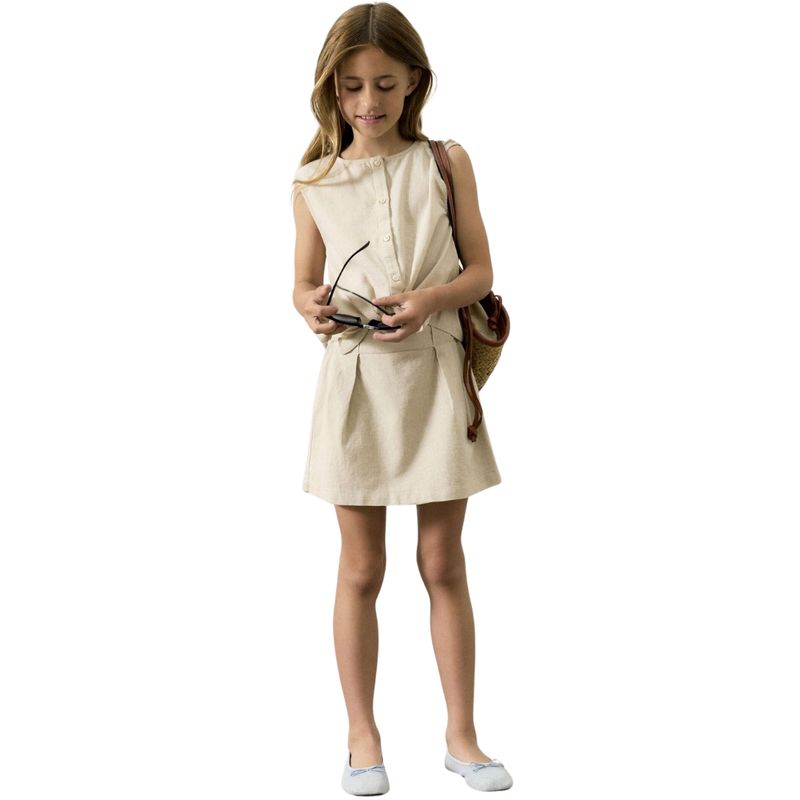 Confeccionada con 80% algodón y 20% lino, esta blusa combina suavidad, transpirabilidad y ligereza. Los materiales naturales aseguran confort durante todo el día, manteniendo a tu hija fresca y cómoda en climas cálidos, mientras que la estructura del tejido garantiza durabilidad y un tacto agradable al contacto con la piel.