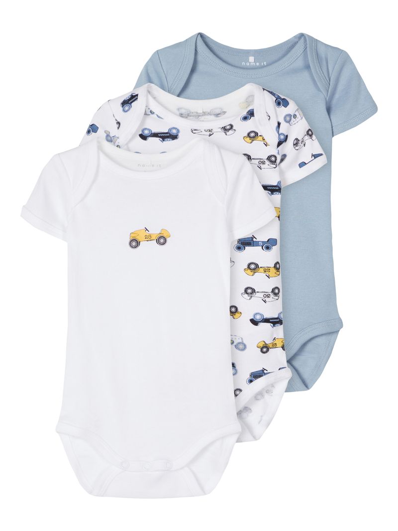 - Paquete de 3 - Algodón orgánico - Mangas cortas - Escote americano - Botones de presión en la entrepierna