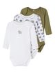 - Paquete de 3 - Algodón orgánico - mangas largas - escote americano - Botones de presión en la entrepierna