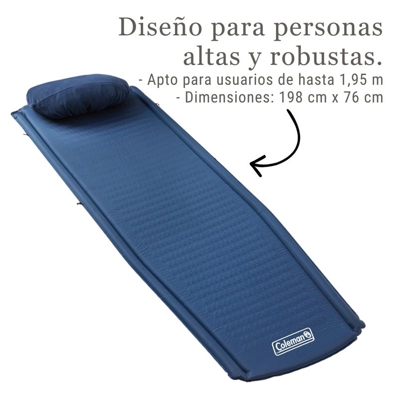 La bolsa para dormir autoinflable Coleman Montauk Camp está diseñada para ofrecer una experiencia de descanso cómoda, práctica y confiable en actividades al aire libre. Es una opción ideal para camping, senderismo y escapadas donde se valora una rápida instalación, buen soporte y durabilidad.