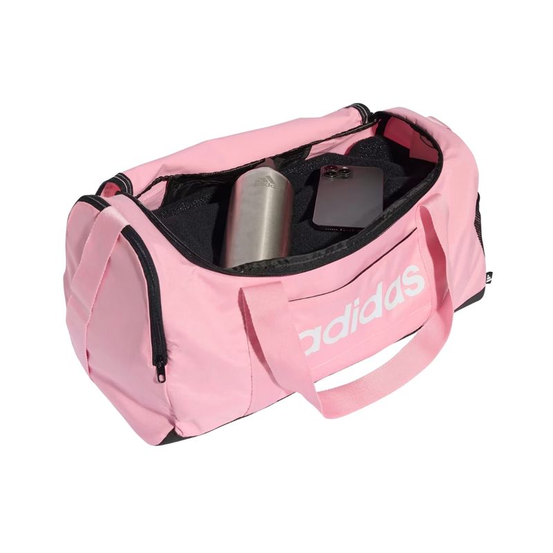 El Bolso Deportivo Linear Duffel Rosa de Adidas está diseñado para acompañarte en entrenamientos rápidos, viajes cortos o actividades deportivas diarias. Su compartimiento independiente permite guardar tus champion de manera organizada, mientras que los bolsillos internos y externos ofrecen espacio seguro para tus artículos esenciales. El diseño ergonómico, junto con las asas de mano acolchadas y la correa ajustable para el hombro, facilita su transporte y garantiza comodidad durante todo el día.