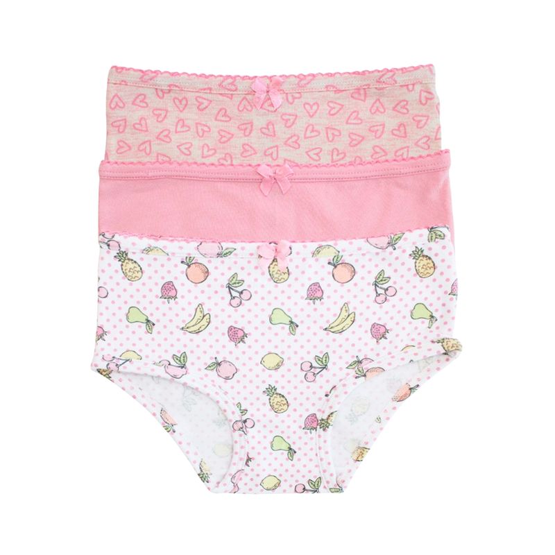 • Pack de tres bombachas infantiles combinadas con colores sólidos y estampados divertidos.