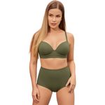 La Bombacha De Tiro Alto Color Verde Militar Mujer St Even está diseñada para resaltar la figura femenina de manera elegante y confortable. Su corte de tiro alto ayuda a estilizar la cintura y proporciona cobertura completa, mientras que el forro interno en powernet actúa suavemente para reducir el abdomen y brindar un ajuste favorecedor. Esta prenda es ideal para usar diariamente o como parte de conjuntos de ropa interior coordinados.