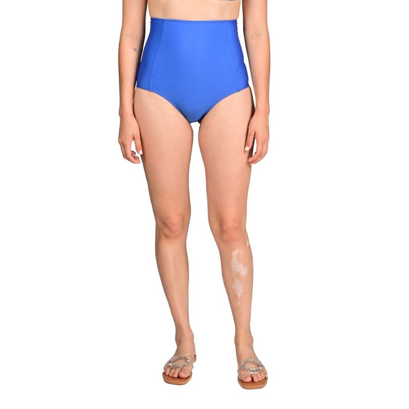 La Bombacha Liso Azul de Mix & Match es un traje de baño con estilo vintage y cintura alta, que combina elegancia y comodidad. Su corte clásico de pierna ofrece cobertura total tanto en la parte delantera como trasera, asegurando un ajuste cómodo y seguro para el día a día en la playa o piscina.