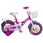 Aro 12" Llantas metálicas Frenos a patín Canasta delantera Guardabarros metálicos delantero y trasero. Rueditas laterales de apoyo. Cubre cadena.