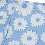 Color base celeste con estampado integral de margaritas blancas de distintos tamaños.