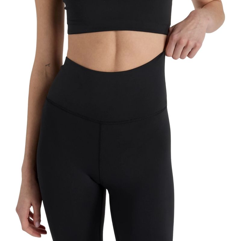Confeccionada con 75% poliéster reciclado y 25% LYCRA®, la calza ofrece elasticidad, recuperación y durabilidad excepcionales. La tecnología NB DRY absorbe la humedad del cuerpo, manteniéndote seca y cómoda durante toda la actividad física. La incorporación de hilos LYCRA® ADAPTIV asegura flexibilidad y un ajuste que acompaña tu figura sin restringir movimientos.