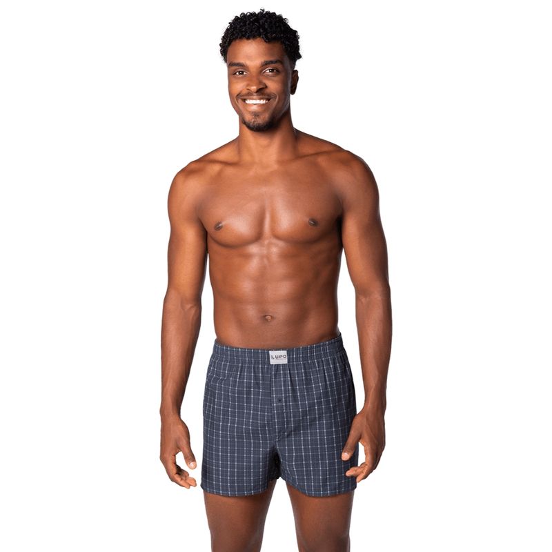 Este modelo presenta un atractivo estampado de cuadros en tono azul, aportando un toque moderno y masculino a una prenda básica. El diseño tipo bóxer clásico cubre completamente la zona superior de las piernas, brindando una sensación de seguridad sin perder confort. La cintura elástica, con excelente retención, se adapta de manera precisa al cuerpo sin causar molestias, ideal para mantener la prenda en su lugar durante todo el día.