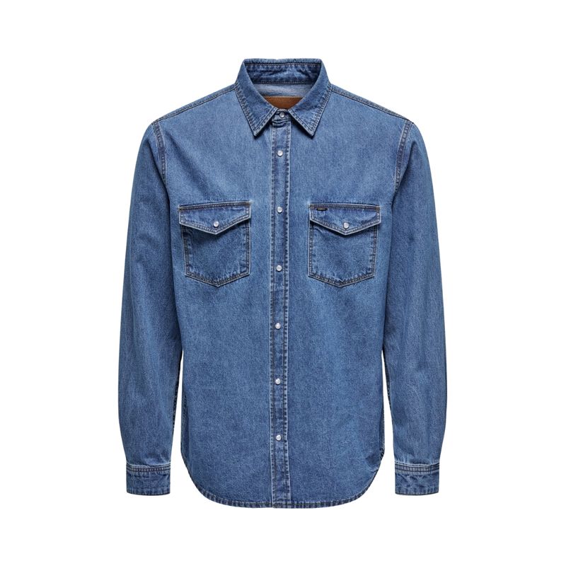 Camisa de manga larga azul medio para hombre de Only & Sons, con bolsillos laterales que aportan funcionalidad y estilo. Confeccionada en algodón para mayor comodidad, es ideal para looks casuales. Su diseño con botones permite combinarla fácilmente con jeans o pantalones rectos. Se recomienda lavar a máquina en frío y secar al aire para conservar su forma.
