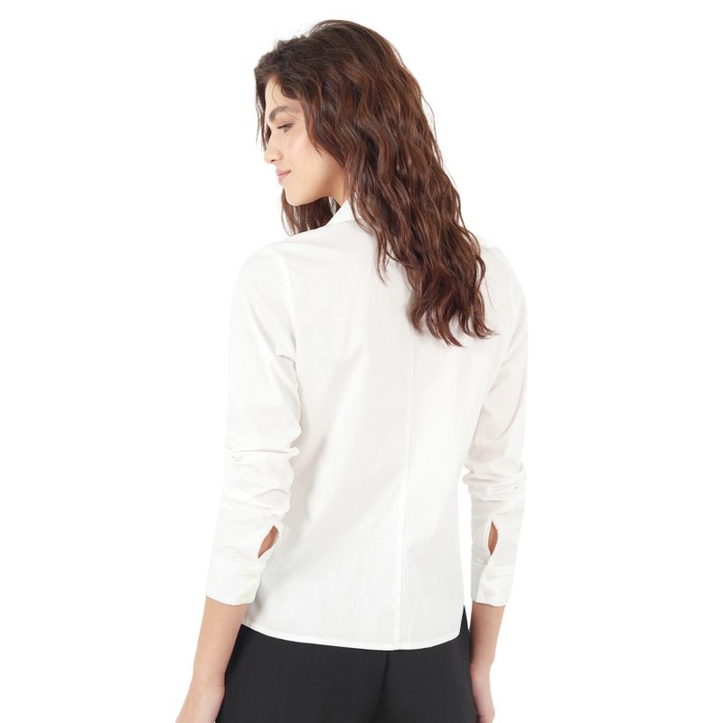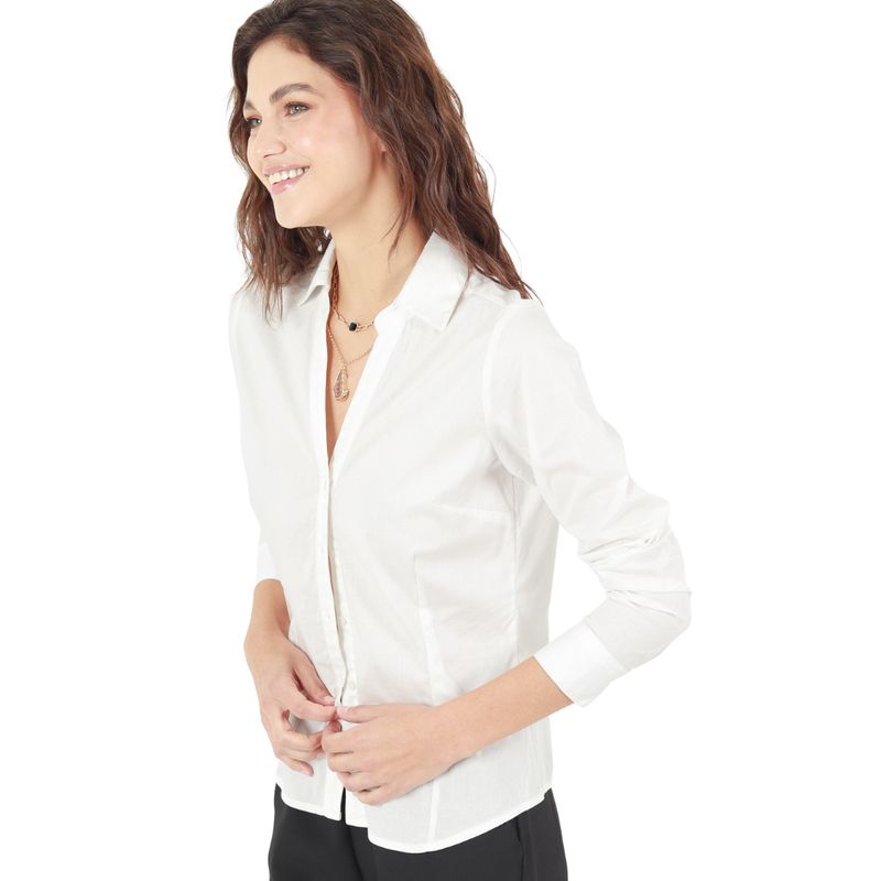 La Camisa Manga Corta Con Textura de la marca Fuera De Serie es una prenda versátil, elegante y atemporal, diseñada para acompañar a la mujer en distintas ocasiones. Su diseño incorpora un cuello clásico que aporta sobriedad, junto con botones frontales que recorren toda la prenda, facilitando su uso. Las mangas cortas con puños abotonados le dan un toque distintivo y pulido, mientras que la textura sutil del tejido realza su estilo moderno.