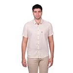 Camisa de manga corta para hombre con corte recto, ideal para un look casual y elegante. Presenta un cuello clásico con solapas y un cierre frontal abotonado con botones oscuros que aportan contraste y sofisticación al diseño. Esta prenda combina simplicidad y estilo, siendo versátil para diferentes ocasiones informales o reuniones casuales.